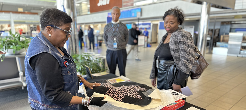 Stephany Brown, an accomplished quilter with 21 years of experience, recently shared her quilting journey with our passengers and community. She demonstrated her fiber arts at JAN. Her quilting and storytelling were presented in honor of American history, highlighting the powerful role art plays in preserving culture and connecting generations.